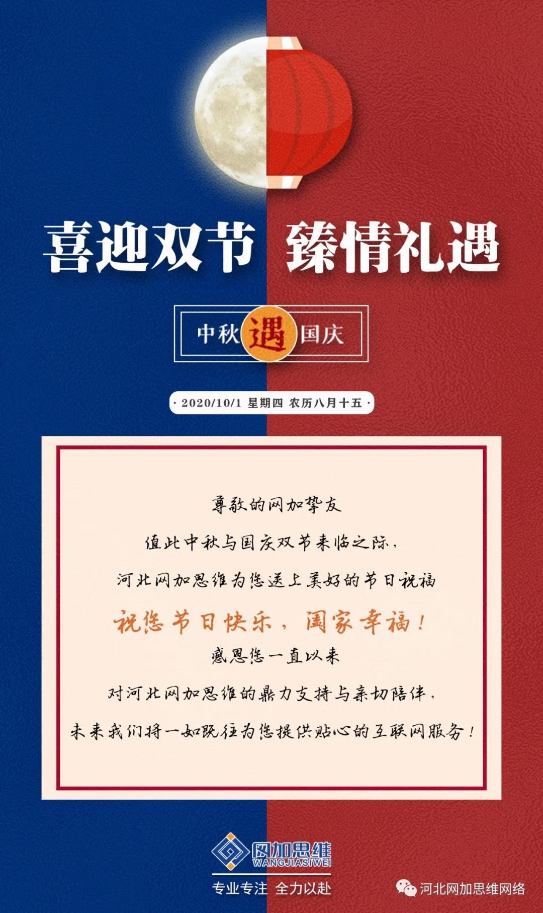 河北網(wǎng)加思維全體員工向長期以來支持與陪伴我們的網(wǎng)加摯友們,送上節(jié)日祝福,祝您:節(jié)日快樂,闔家幸福!